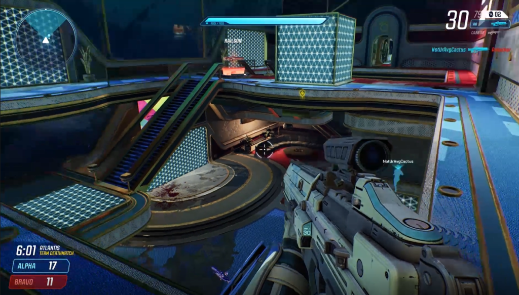 For those who’ve not yet had a chance to experience this game, it has a lot of elements familiar to others in the shooter genre. Much of the game is similar to the look and feel of Halo, with alien-looking landscapes and characters. The one game mechanic that sets it apart from similar games is the ability to open portals. The portal feature allows for players to view and jump to different parts of a map. I found this piece of gameplay to be an awesome and refreshing aspect.